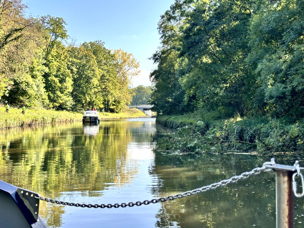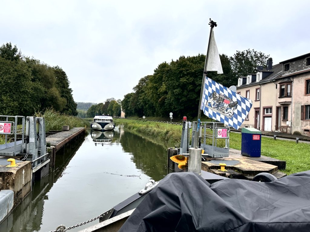 Trotz Sonntag machten wir uns gleich um halb neun auf die Strecke. 13 Schleusen und ca 22 Kilometer lagen auf dem Saarkanal vor uns. Aber wir hatten nach Frühnebel Sonne und blauen Himmel. Hier merkt man die Vermietbootstationen in der Nähe. Naja, die einen können halt fahren und andere wiederum nicht. Uns sind heut einige der zweiten Kategorie begegnet. Nur, die bedenken nicht, dass sie mit ihren Plastikbooten im Falle eines Falle den Kürzeren ziehen. Am schlimmsten sind die, die uns noch mit einer Flasche Bier in der Hand zu prosten.