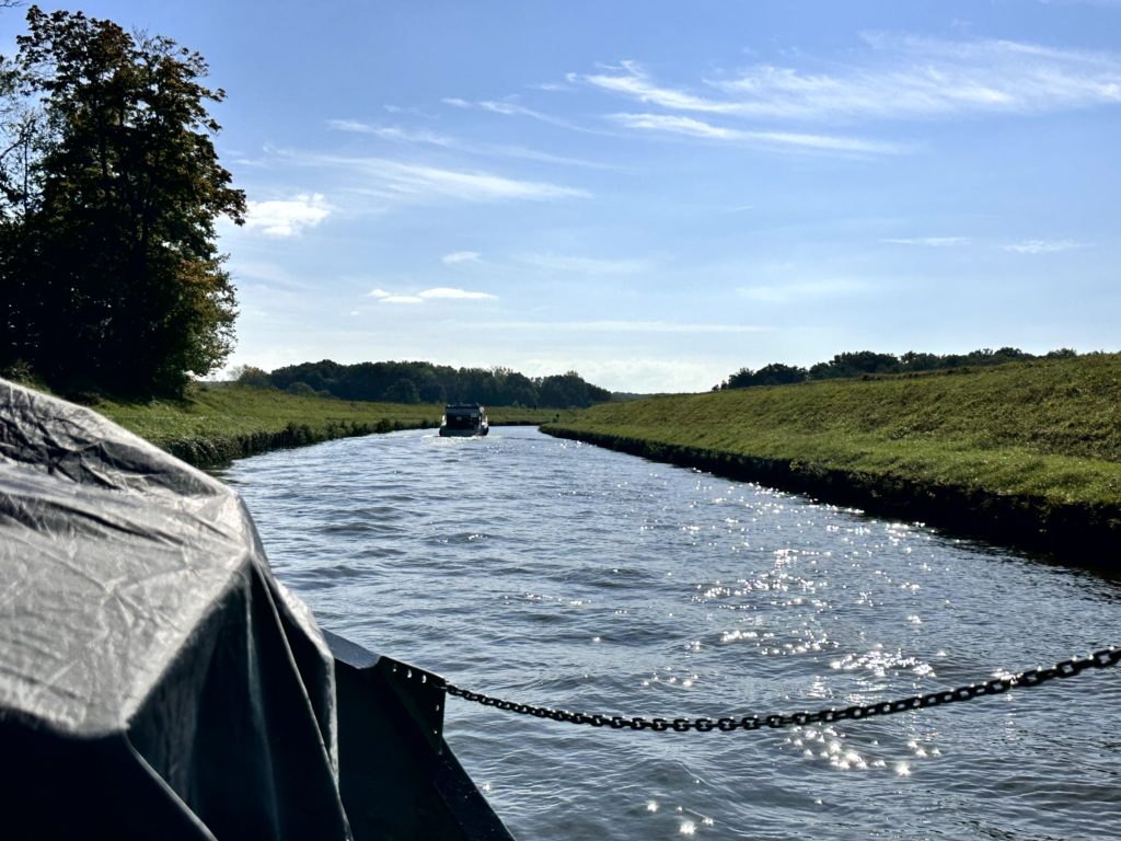 Ein bisschen später folgte uns ein Boot, wollte überholen, das ging aber in dem schmalen Abschnitt nicht.