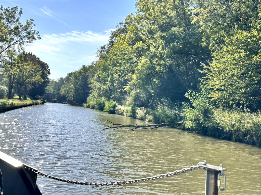 Nach der vierten Schleuse stand britschbreit ein LeBoat Boot vor den Schleusentoren. Der musste dann nach unserm langen Signalton ein bisschen rangieren, damit wir überhaupt rausfahren konnten…tztz.