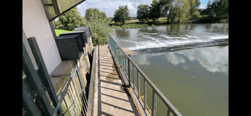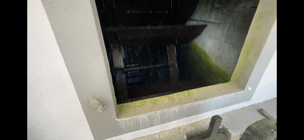 Als wir ankamen , hörten wir schon das Mühlrad, das sich durch die Wassermassen schaufelte.