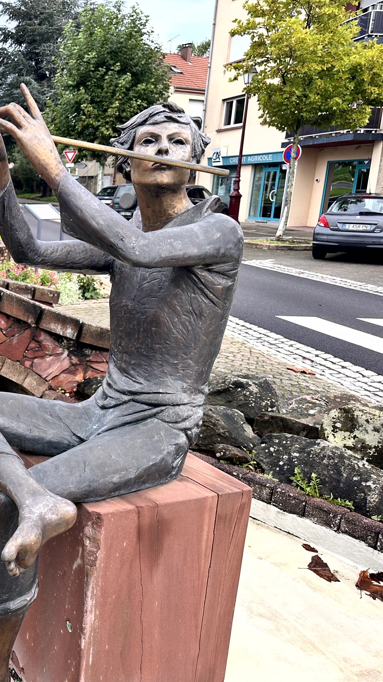 Überall im Ort waren Skulpturen mit verschiedenen Figuren, z. Bsp. ein Flötenspieler oder ein Elf am Brunnen.