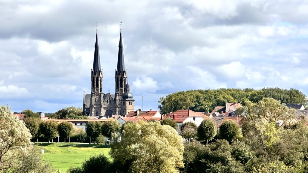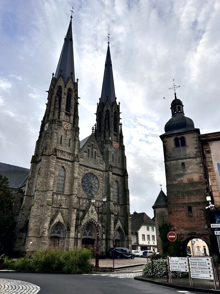 Dick eingepackt spazierten wir früh in den Ort Sarralbe, in dessen Ortsmitte die gotische Kirche St. Martin steht, auch bekannt als die Kathedrale des Saarlandes. Die Kirche ist komplett gebaut aus rosaem Sandstein der Vogesen mit zwei siebzig Meter hohen Türmen.