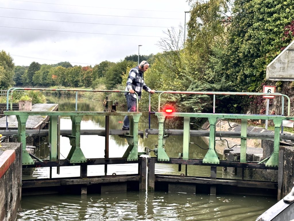 Die zweite Schleuse funktionierte schon mal wieder nicht. Martin versuchte die Tore zu rütteln, half aber nichts. Er musste die VNF (Voies navigables de France = ist die staatliche Wasserstraßenverwaltung in Frankreich) anrufen, doch vorher probierte er die Methode vom letzten Jahr – einfach mal an den Toren wackeln half aber diesmal nicht.
