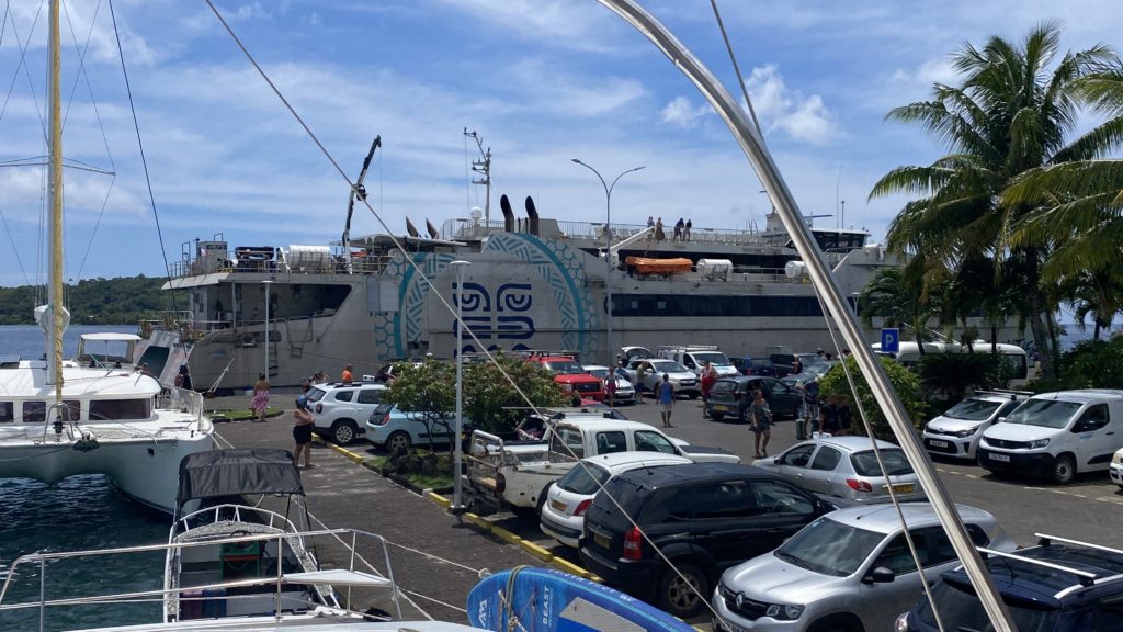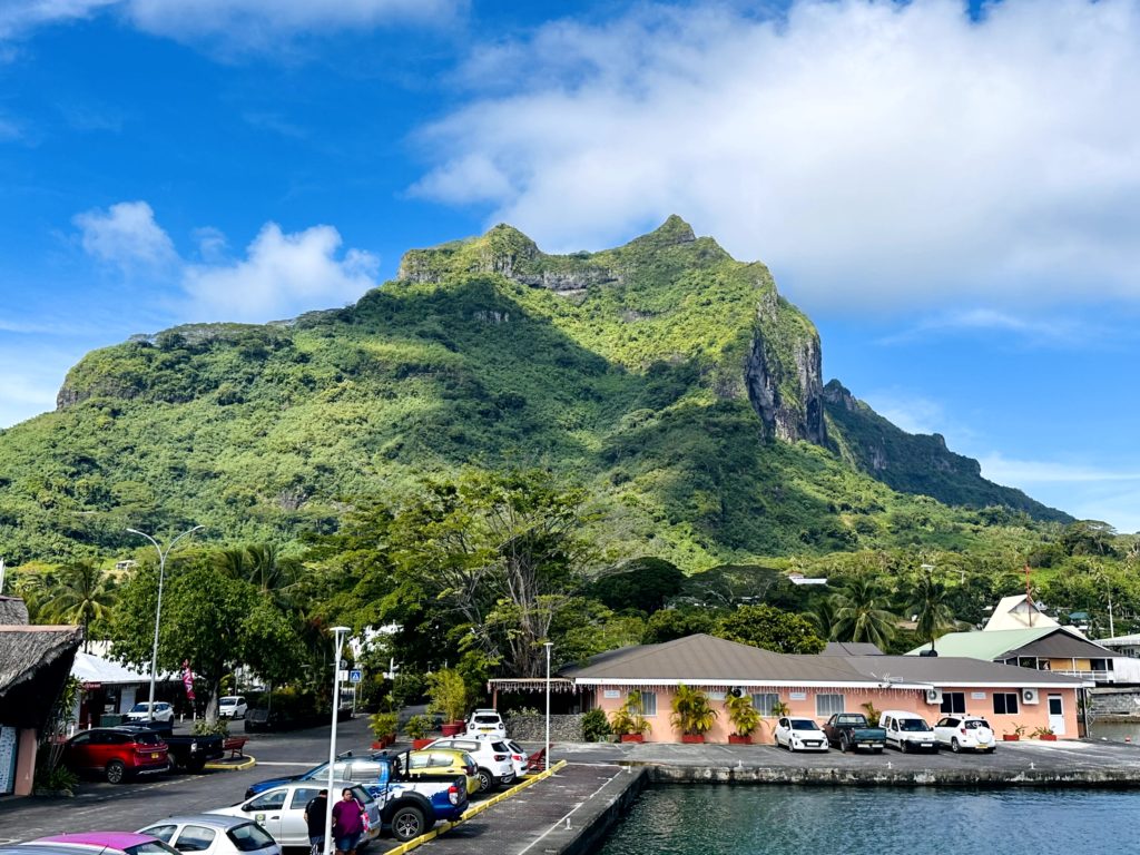 Früh um sieben hieß es Anker auf Richtung Bora Bora. Bye bye Paradies. Leider meinte es der Wettergott nicht so gut mit uns. Es scheinte zwar die Sonne, aber der Wind kam von der falschen Seite. Martin musste die ganze Strecke motoren. So tuckerten wir bei ca. 5-8 Kn Wind die 5 Stunden nach Bora Bora gegenan und konnten mittags im Hafen Vaitape anlegen.