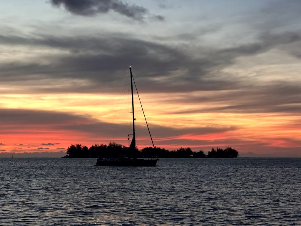 Kaum waren die Leinen fest, schwärmte die Crew aus. Leider waren alle Geschäfte heute am Sonntag geschlossen, das war schon ein bisschen ärgerlich. Der Bora Bora Yachtclub hatte geöffnet, dort trafen sich dann später alle . Martin und ich hüteten das Boot. Da es ausnahmsweise keinen Kuchen gab, hab ich dem Skipper Pfannkuchen gemacht. Gegen Abend beschloss Martin, doch zum Bora Bora Yachtclub an die Mooring zu fahren, da die Fähren ganz schön Welle machten und das Boot an der Kaimauer ganz schön umherschaukelte. Ich wollte gerade der Crew Bescheid geben, da war Waltraud schon am Telefon und teilte mir mit, dass alle im Taxi Richtung Boot fuhren. Als dann alle an Bord waren, Ute kam noch zu Fuß gelaufen, legten wir vom Hafen ab und tuckerten zur Mooringboje am Yachtclub.