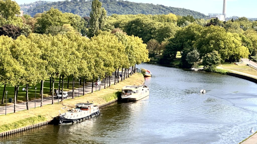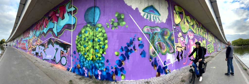 Freitag war wieder ein wunderschöner Herbsttag mit 30 Grad. Wir beschlossen, mit den Rädern nach Saareguimes zu fahren. Das wird unser nächster Stop und liegt wieder in Frankreich. Die 20 km am Fluss entlang waren wunderschön und bei den Temperaturen waren gefühlt alle Leute von Saarbrücken unterwegs. Die ganzen Betonwände entlang am Wasser waren wieder voll mit Graffitis. Manches ist Kunst aber vieles ist einfach nur Schmiererei