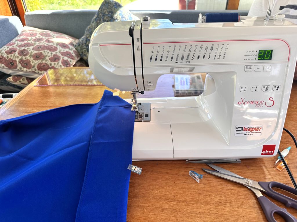 Am Donnerstag wollte Martin schon zeitig los, um sein Auto in Trier zu holen. Es fuhr alle halbe Stunde ein Zug, also alles easy. Ich wollte mich heute mal lang aufgeschobenen Nähprojekren widmen. Eine WOB Flagge für Tinka und eine Abdeckung für unsere Kabinenluke. Die MS Steilvoll machte derweil vor uns fest.