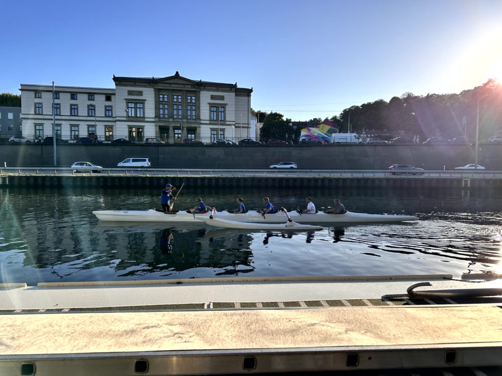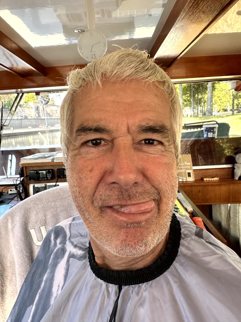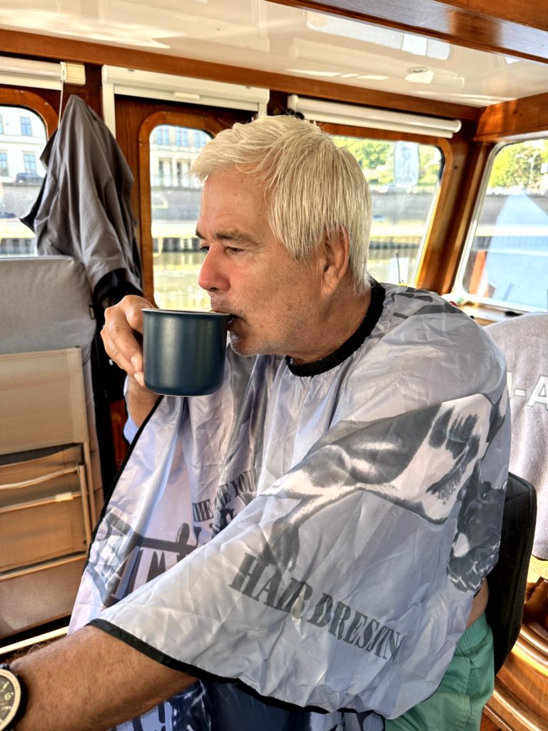 Samstags war nochmal ein sonniger Tag mit knapp 30 Grad angesagt. Deswegen bekam Martin erstmal einen neuen Haarschnitt verpasst. Der Steuerstand wurde kurzerhand zum Friseursalon umgebaut. Mit neuer Frisur ging es dann in die Stadt.