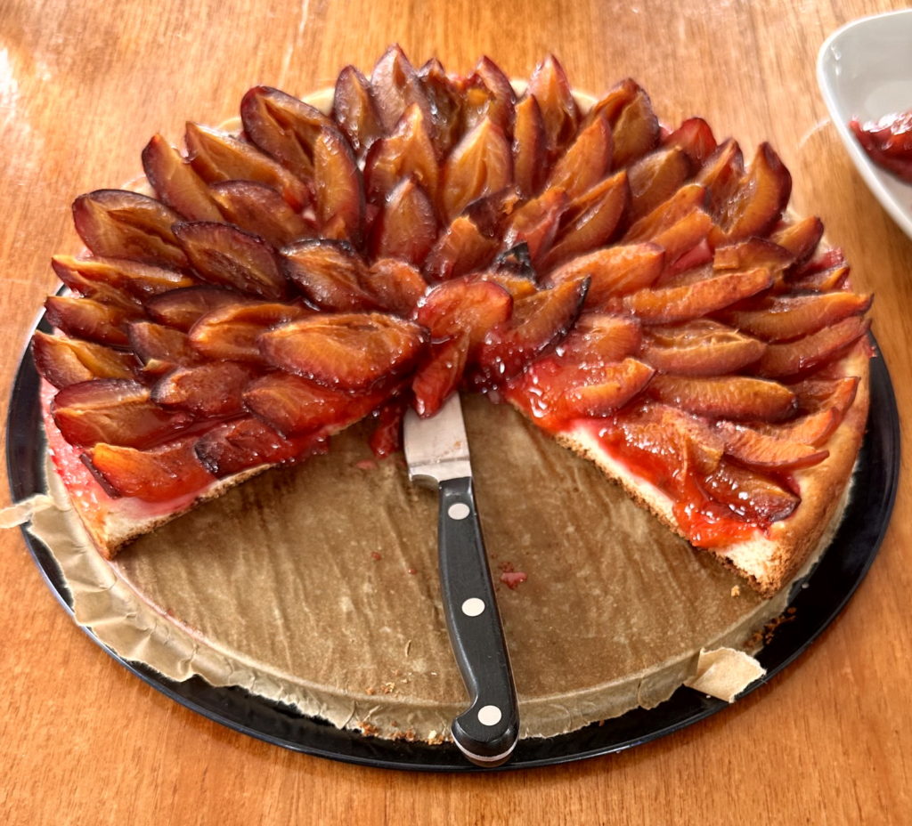 Dienstag Nacht war es ganz schön stürmisch, aber es regnet zum Glück nicht. Ich hab in der Früh noch passend zum kommenden Herbst einen Zwetschgendatschi gebacken und Martin hat das Brett nochmal lackiert.