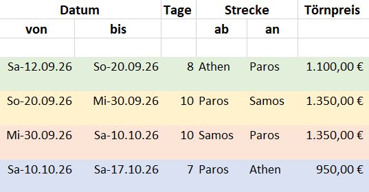 und haben in diesem Zeitraum vier Termine wie folgt: