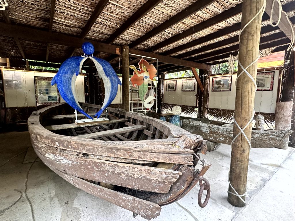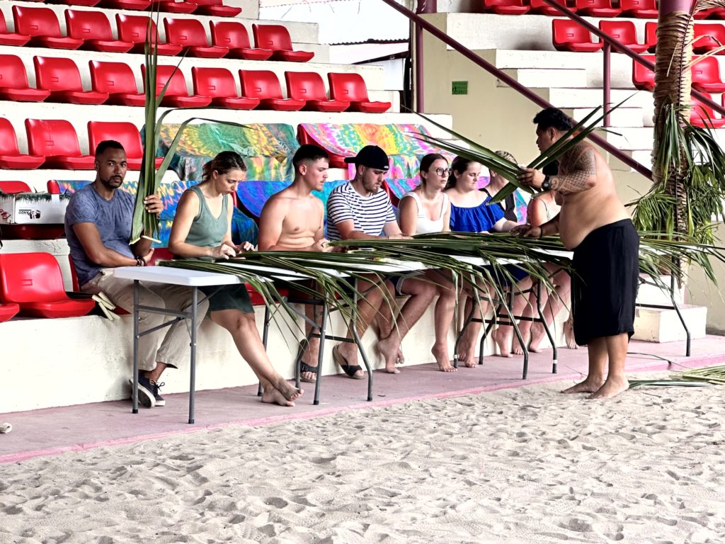 Eine Touristengruppe lernte dort gerade die polynesische Flechtkunst. Im Tiki Village finden kulturelle Veranstaltungen, wie Folklore Abende statt. Dort gibt es auch ein Restaurant und einen Perlenshop.