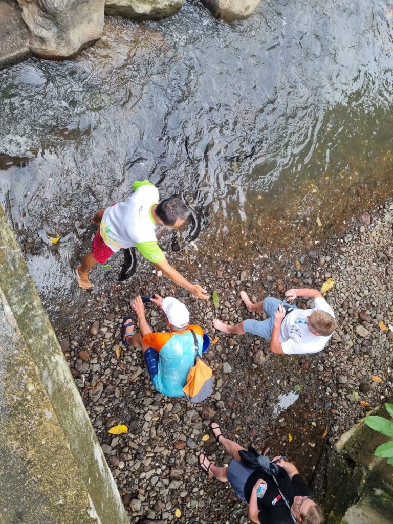 Der Skipper fuhr die Crew in zwei Etappen an Land. Waltraud, Norbert und Matthias und die anderen drei, Katrin, Götz und Ute wollten sich jeweils ein Auto für eine Inselrundfahrt mieten. Hier gibt es echt viel Natur, einige Museen, eine Perlenfarm und die heiligen blaue Aale zu sehen. Die Rumdestillerie hatte geschlossen.
