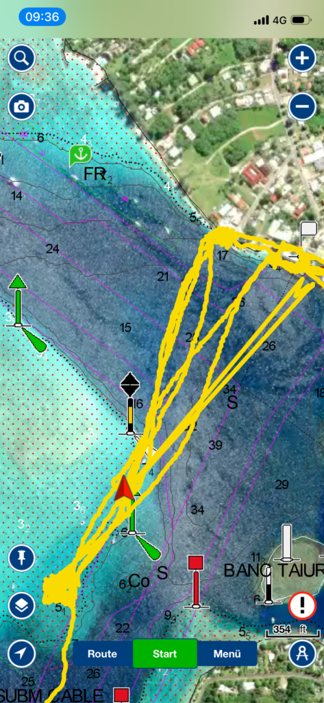 Zurück an Bord machte ich kleine Bananenmuffins, da alle Bananen auf einmal reif geworden sind. Martin ließ derweil den Wassermacher und den Generator laufen. Auf dem Rückweg vom Yachtclub zum Boot mit dem Dinghi sah Martin eine Boje, die viel näher zum Land war. Falls die später noch frei ist, gehört sie uns.