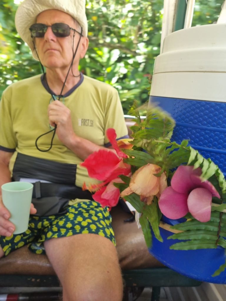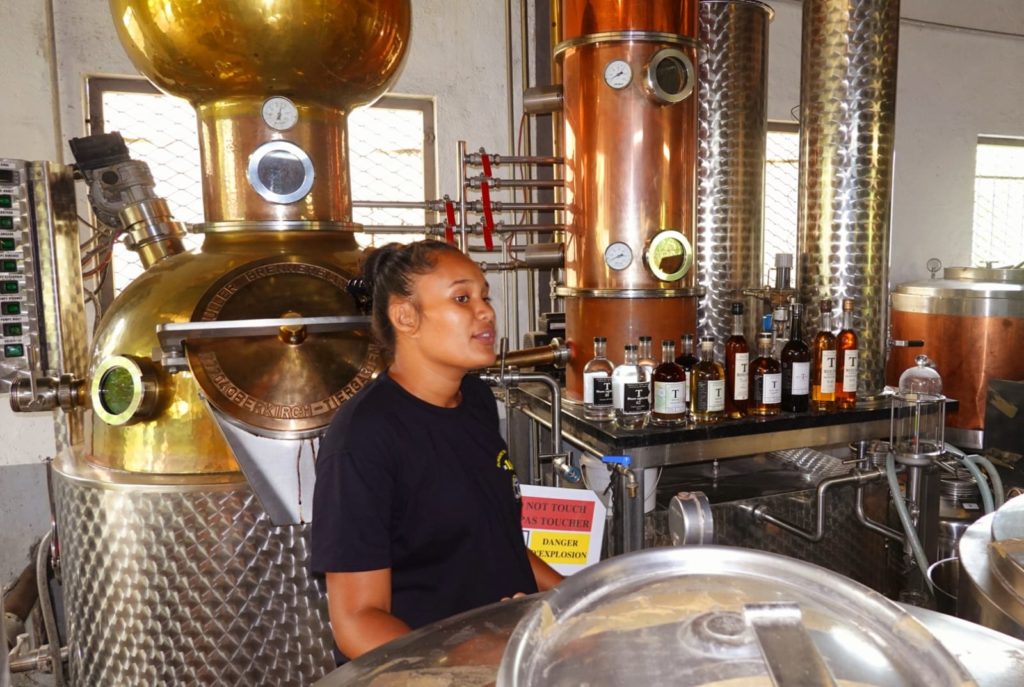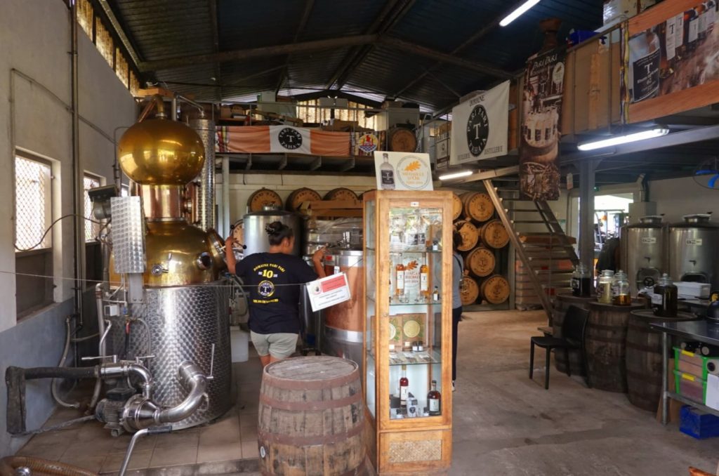 Zum Schluss hielten sie in der Pari Pari Rum Destillerie. Der war so gut, dass Matthias und Waltraud kleine Flaschen mit Vanille und IngwerRum gekauft haben.
