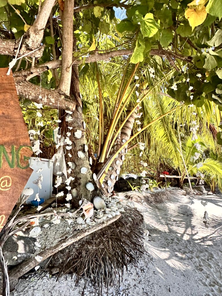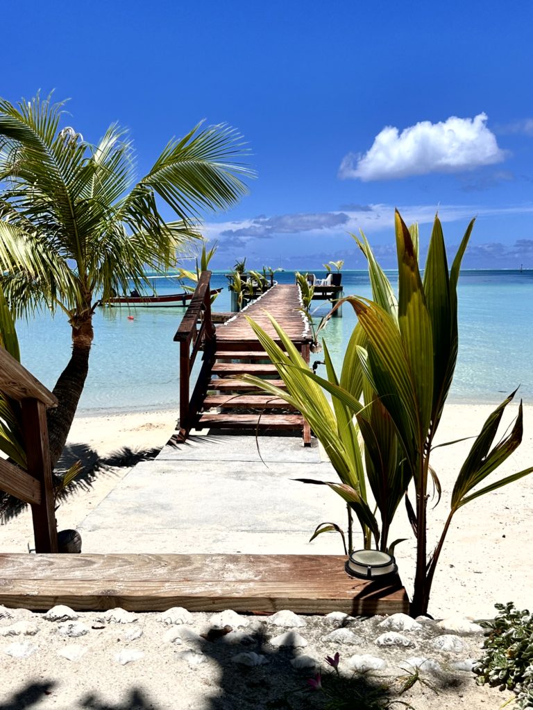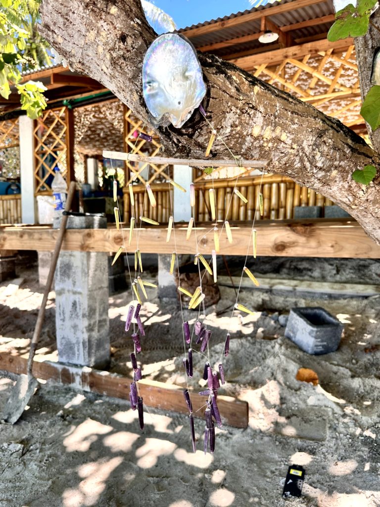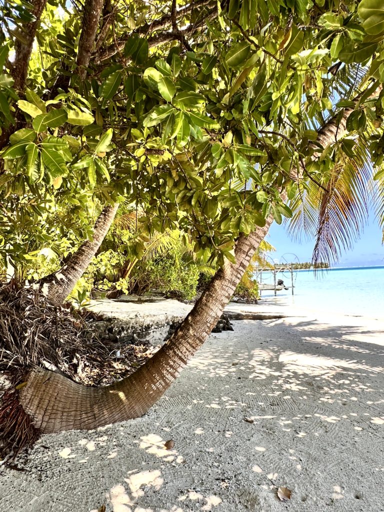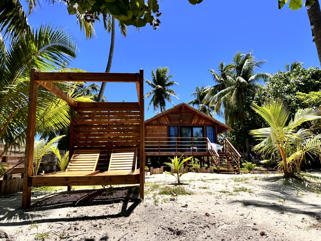 Auf dem Motu wurde fleißig gearbeitet. Die kleinen Chalets, die sie letztes Jahr angefangen hatten, waren fast fertig. Die sehen wirklich schön aus. Wir sind noch ein bisschen weiter spaziert. Auf einer HÄngematte saß ein Einheimischer und genoss einfach den wunderschönen Blick .