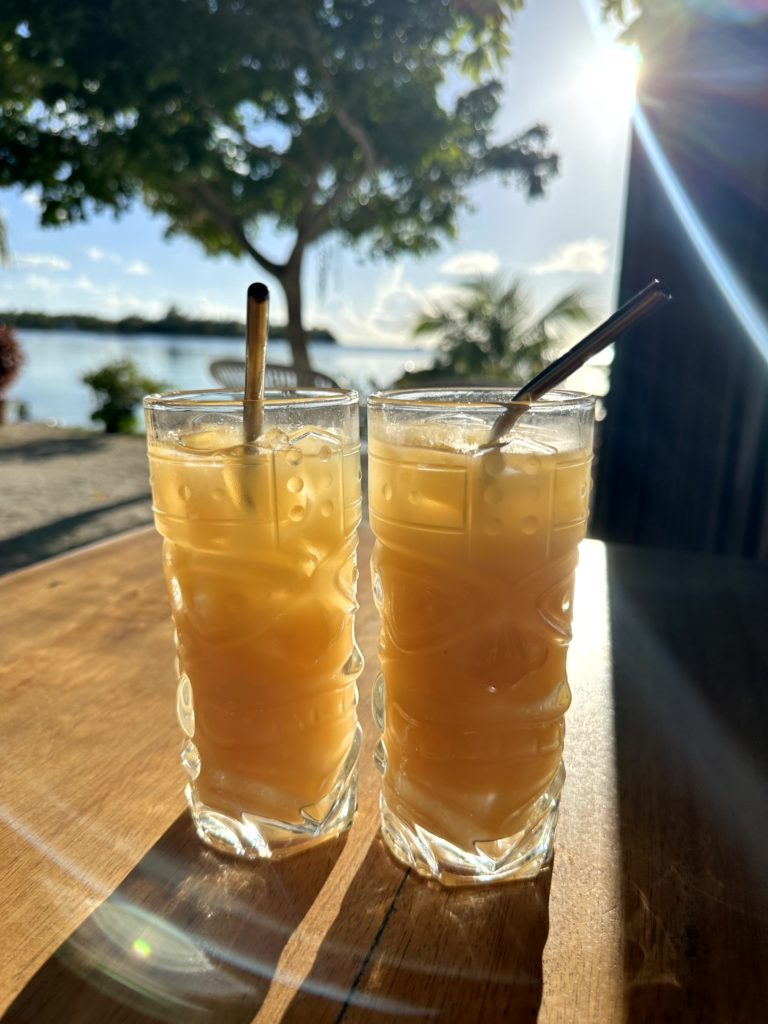 Um 17.00 Uhr setzten wir mit dem Dinghi über an Land ins Restaurant und bestellten schon mal einen leckeren Rumpunsch als Sundowner.