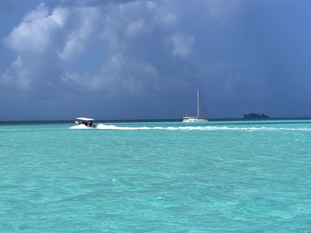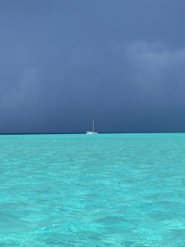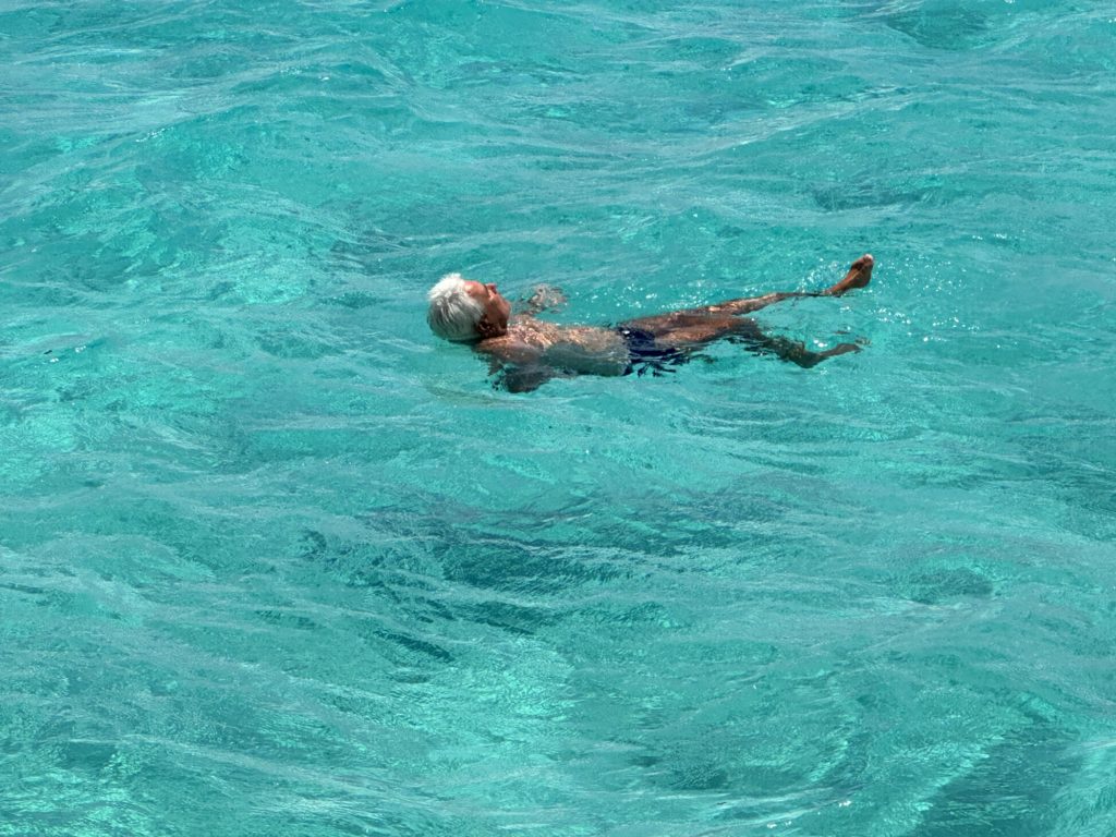 Heute konnten wir nochmal ausgiebig baden im türkisfarbenen Wasser vor der schönen Privatinsel. Das nutzen alle an ihrem letzten Tag trotz Hai und Rochensichtung. Kaffee und Kuchen gab es schon um zwei, weil wir zurück in die Marina mussten.