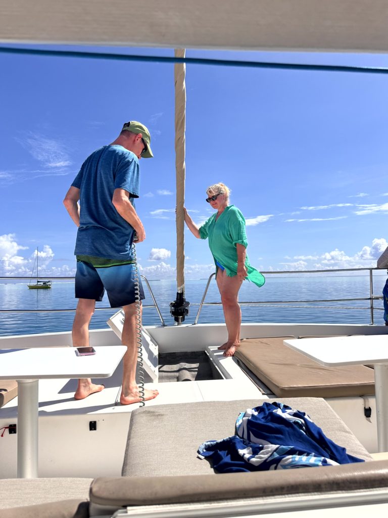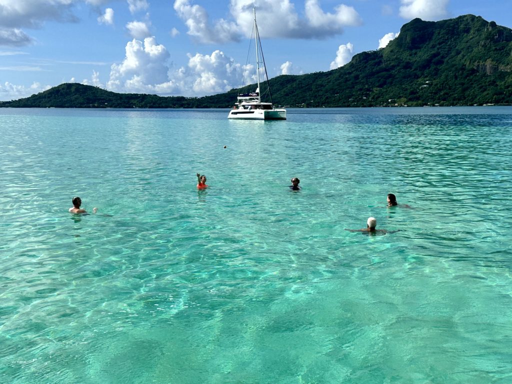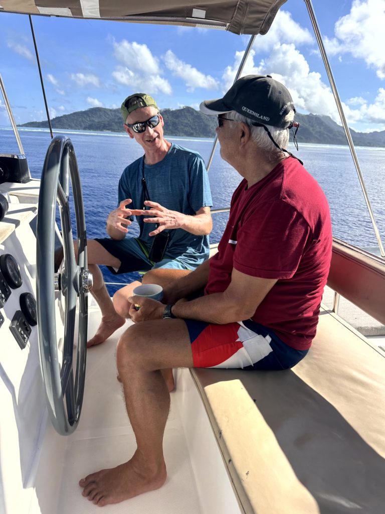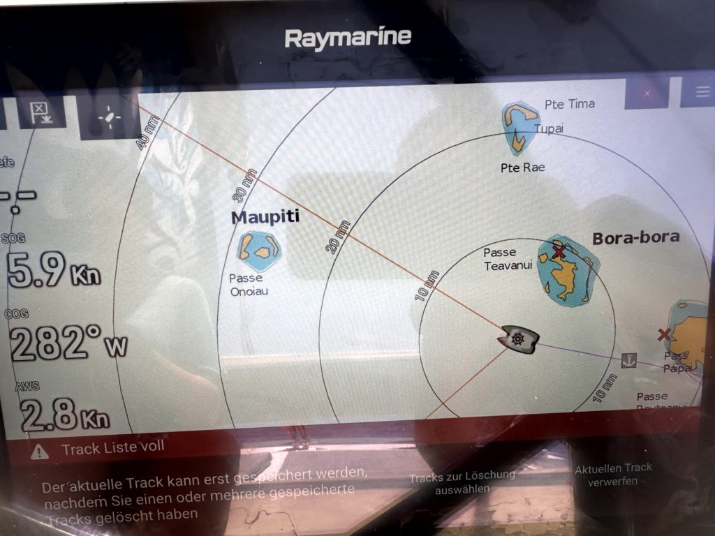 Wir wollen heute Richtung Maupiti, deswegen hieß es um sieben Anker auf. Mit dem neuen Ankerteam Helene und Walde klappt das schon super gut. Die Wetterbedingungen waren schon wie bei den letzten Malen nicht optimal. Martin musste die 52 Seemeilen motoren mit dem Großsegel als Unterstützung. Wir frühstückten unterwegs und haben vorsichtshalber alles rutschfest verstaut.