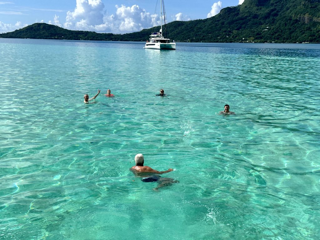 Routiniert wurde der Anker gesetzt und kaum hatte Martin die Motoren ausgeschaltet, wurde die Badeleiter ins Wasser gelassen und alle sprangen vor dem Kaffee ins Wasser. Nach dem Kaffee war Fotosession um Wasser angesagt. Melanie gab die Posen an und fotografierte. War sehr lustig und es sind schöne Fotos entstanden. Danach wurde Wasserball gespielt. Man mag gar nicht raus aus dem Wasser.
