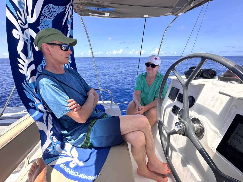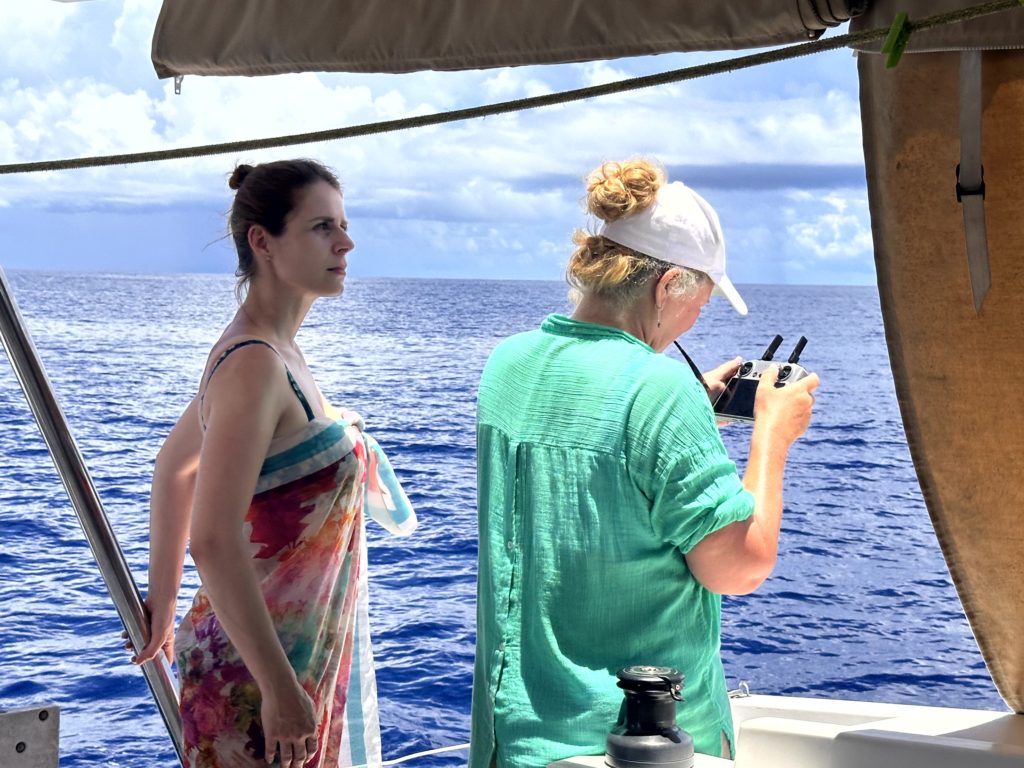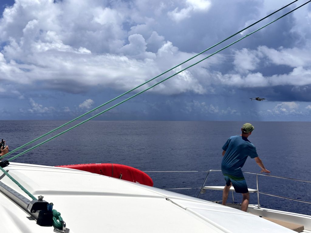 Kurz vor dem Ziel, dem Pass von Maupiti, wollte Helene ihre Drohne ausprobieren. Irgendwie hat sie plötzlich nicht mehr reagiert und es gab eine Rettungsaktion vom Skipper und Walde, der die dann doch noch greifen konnte.