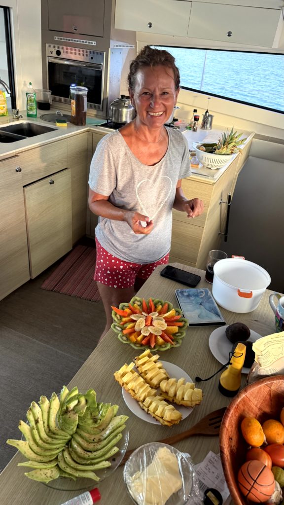 Nach einer guten halben Stunde fuhren wir alle zufrieden zurück aufs Boot. Melanie und Sylvia zauberten ein leckeres, sehr buntes Omelette und ich hatte schon Früchte und eine Avocado vorbereitet, so hatten wir ein weiteres Highlight.