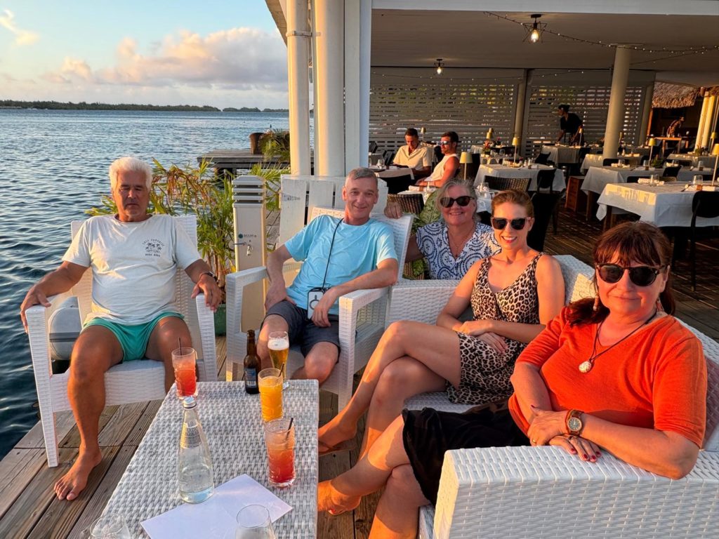Die Crew kam um 18.00 Uhr im YachtClub an und Martin brachte den Einkauf mit dem Dinghi an Bord. Die vier hatten viel Spaß nach den Fotos und Videos. Wir fuhren nochmal rüber zum Sundowner, bevor es dann zum Essen aufs Boot zurück ging.