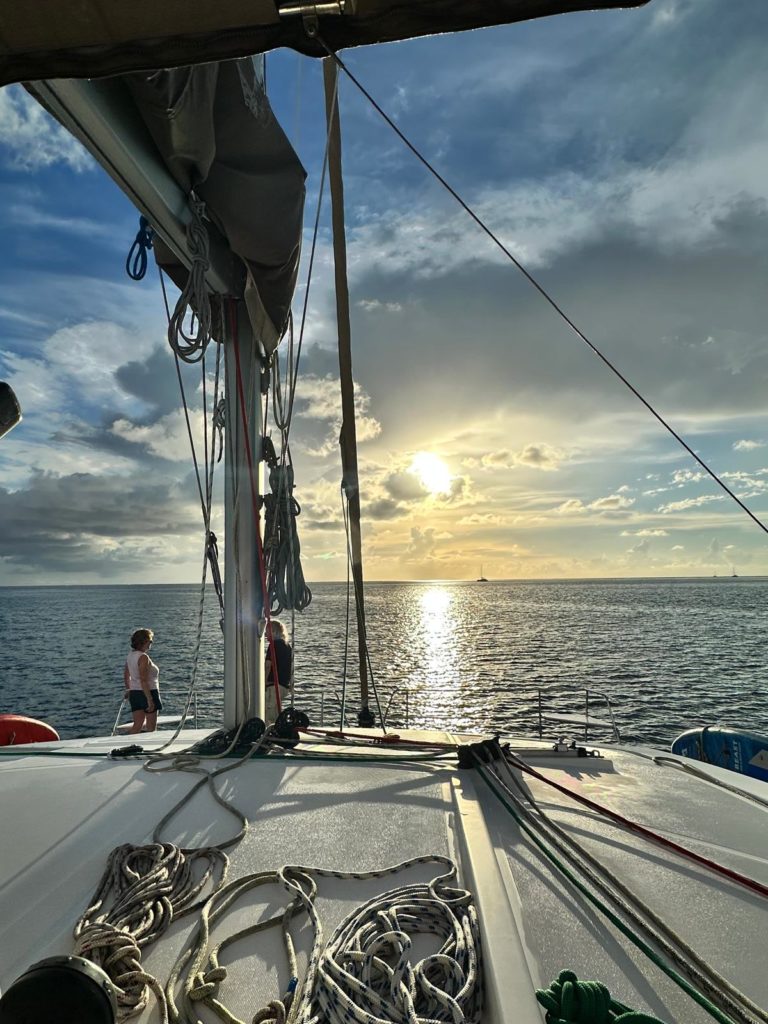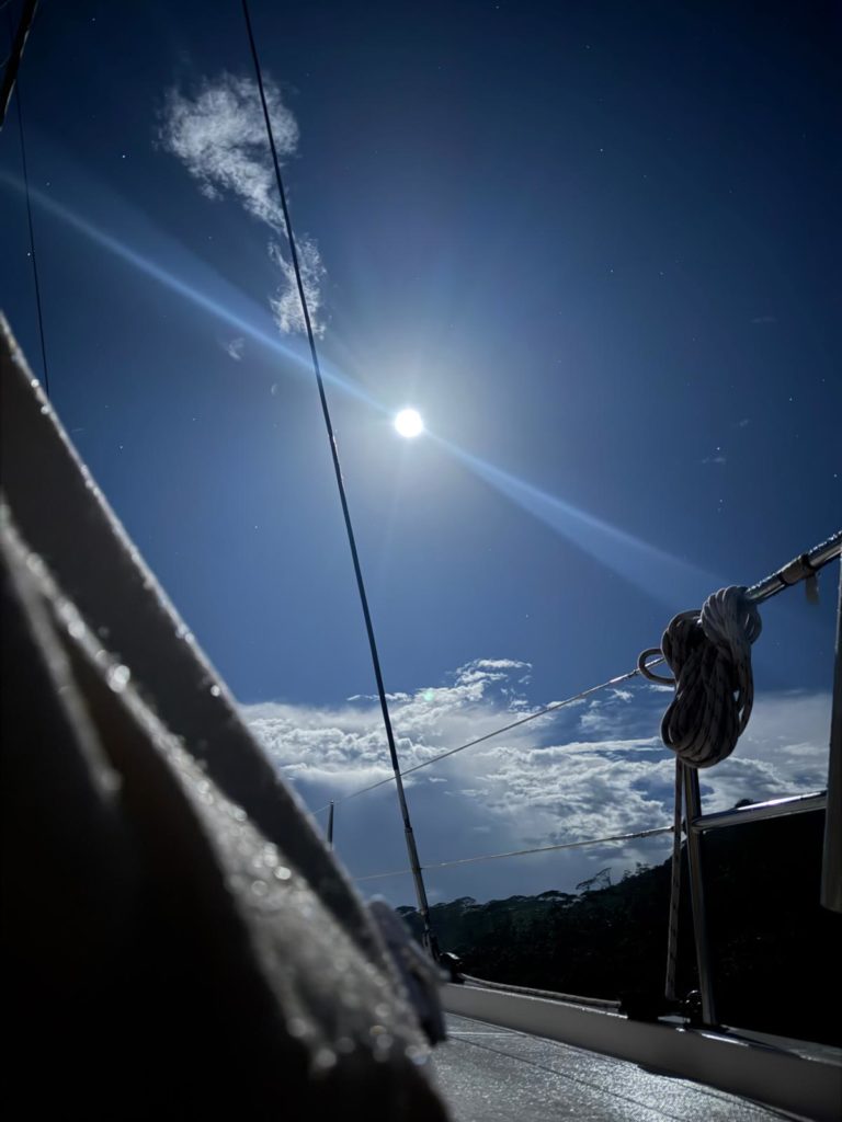 Der Tag beginnt vor Anker in einer ruhigen Bucht auf der Westseite von Taha’a, unweit der grossen Schwesterinsel Raiatea. Gestern Abend lag noch warmes Licht über der Lagune, doch in der Nacht hatte es kräftig geregnet. Auch im Laufe des Tages zeigt sich, dass das Wetter heute eine eigene Rolle spielen wird.