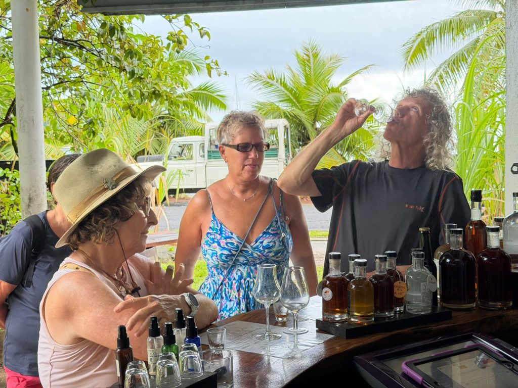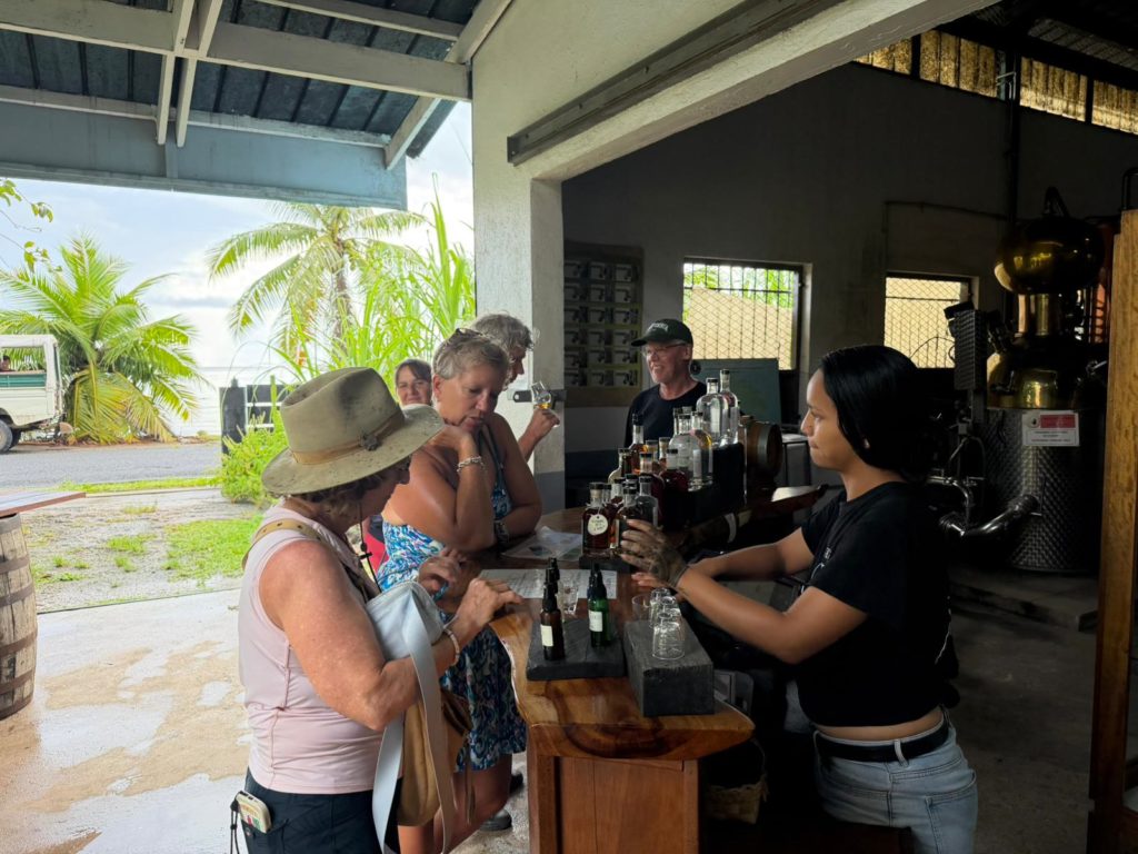 Der nächste Halt ist die kleine Pari Pari Rum Distillery. In der Produktionshalle gibt es eine kurze Erklärung zur Herstellung des Rums aus Zuckerrohr, gefolgt von einer sehr kleinen Verkostung. Geschmacklich kann der Rum nicht jeden überzeugen, doch der Einblick in die Destillation ist spannend.