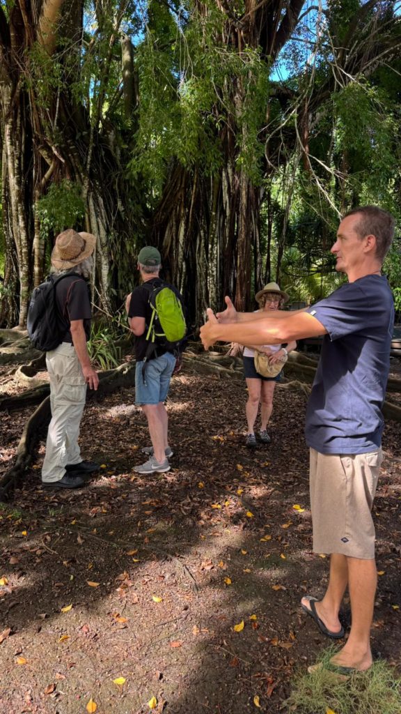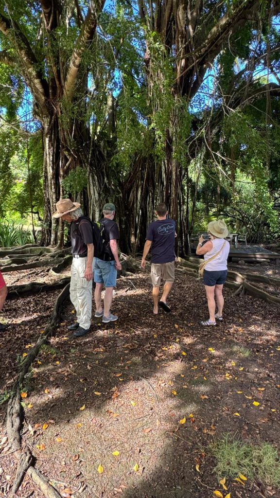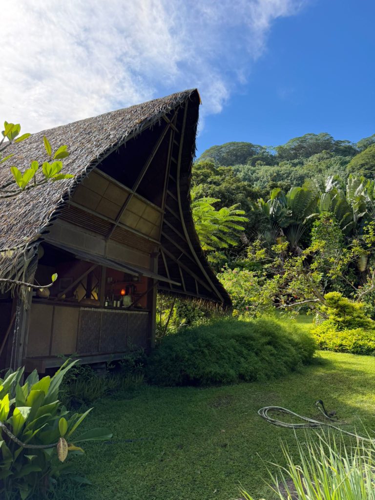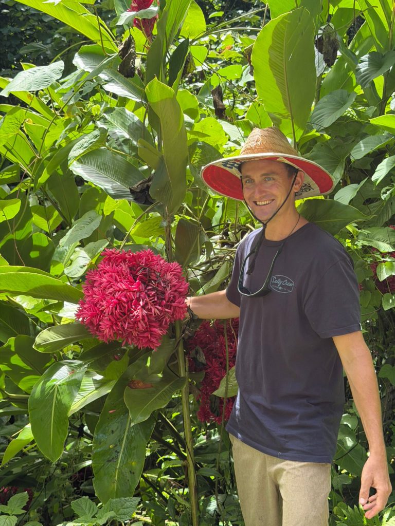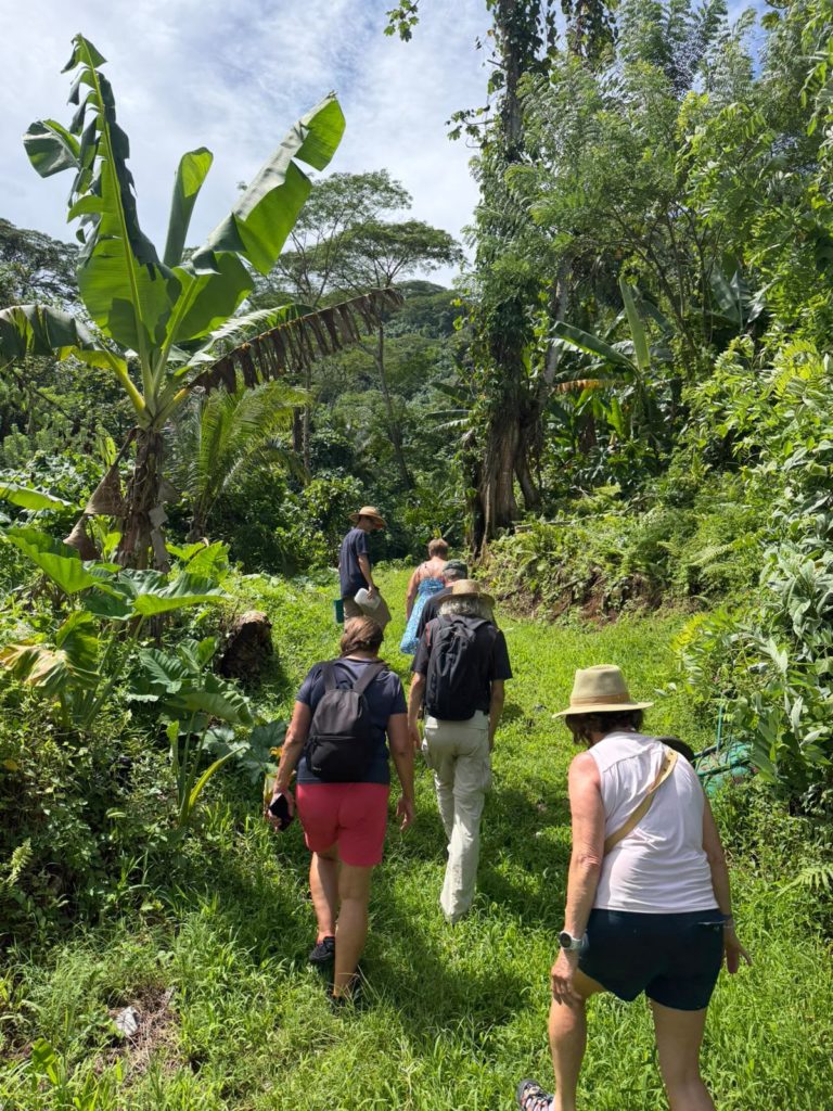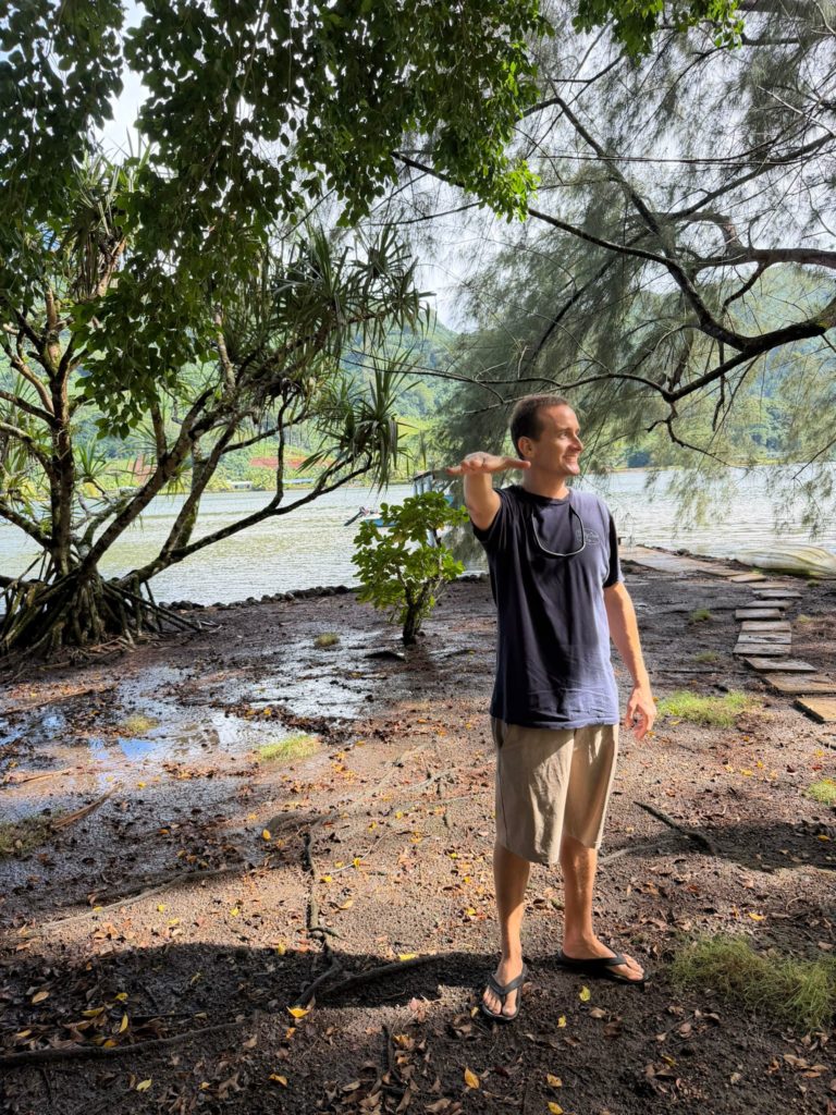 Skipper Martin hat für die Crew eine Inseltour organisiert. Ziel ist ein Ausflug mit Noah von Vanilla Tours Tahaa (www.vanillatours.pf). Kurz nach neun bringt das Dinghy die Gruppe zum kleinen Steg auf Noahs Grundstück, wo der Gastgeber bereits wartet. Noah ist auf Taha’a geboren, Sohn eines französisch-schweizerischen Paares. Nach Studium und Arbeit in Frankreich lebt er seit rund zehn Jahren wieder auf der Insel und hat das Familiengeschäft übernommen. Der Rundgang beginnt im wunderbaren Garten. Zwischen üppig blühenden Pflanzen erklärt Noah die Bedeutung vieler Gewächse – manche dekorativ, andere medizinisch genutzt, viele tief verwurzelt in der polynesischen Kultur.