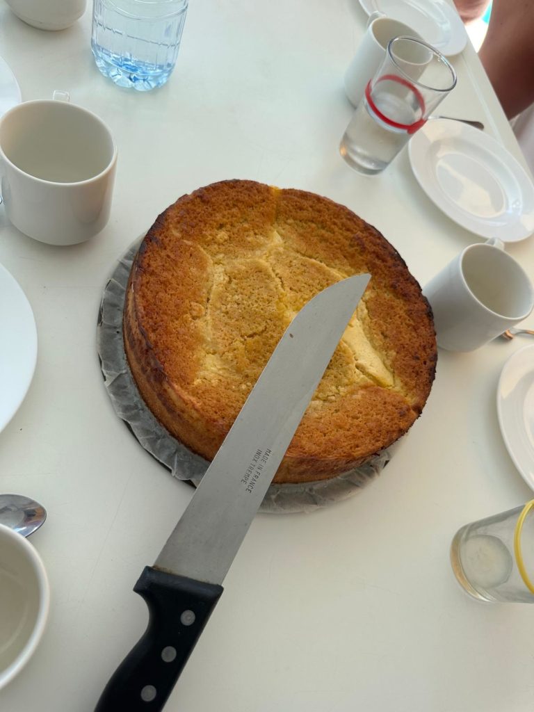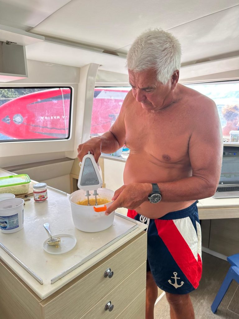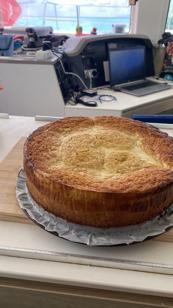 Heute am letzten Tag legte sich der Skipper nochmal richtig ins Zeug. Es gab frisch gebackene Semmeln von ihm zum Frühstück und danach hat er noch einen Kuchen gebacken.