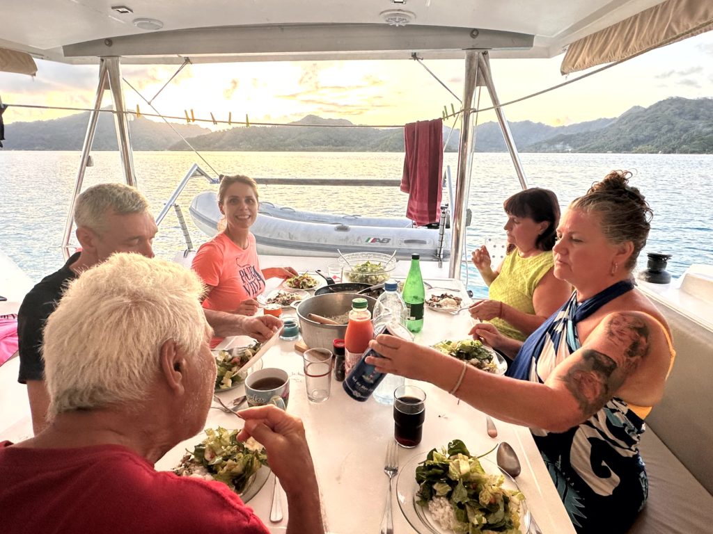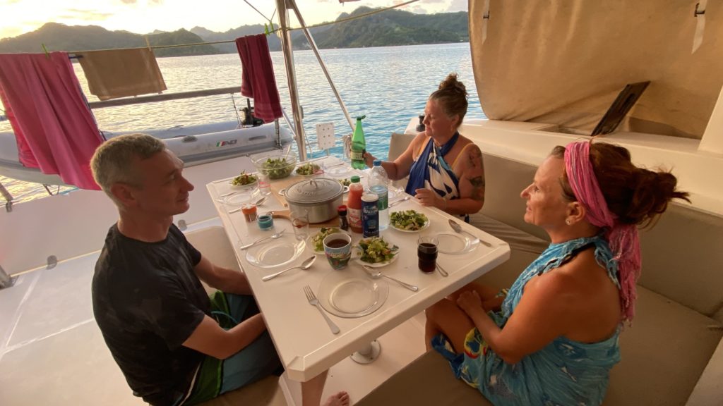 Dann wurden die Kabinen eingeteilt und die Neuen packten erstmal ihr Gepäck aus. Zum Tagesabschluss ging es in die wunderschöne Location Fish and Blue, wo wir schon am Vortag sehr lecker gegessen hatten. Zurück am Boot gingen alle müde von dem aufregenden Tag in die Kojen.